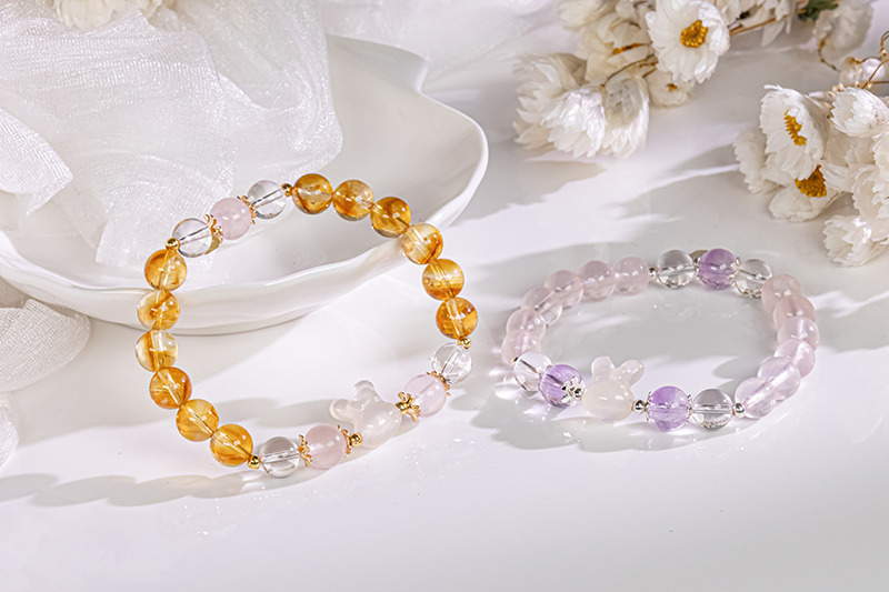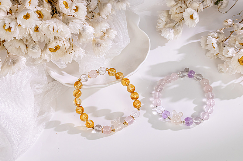 萌萌兔 | 粉 (芙蓉粉晶/薰衣草冰透紫晶/白水晶/白玉髓)